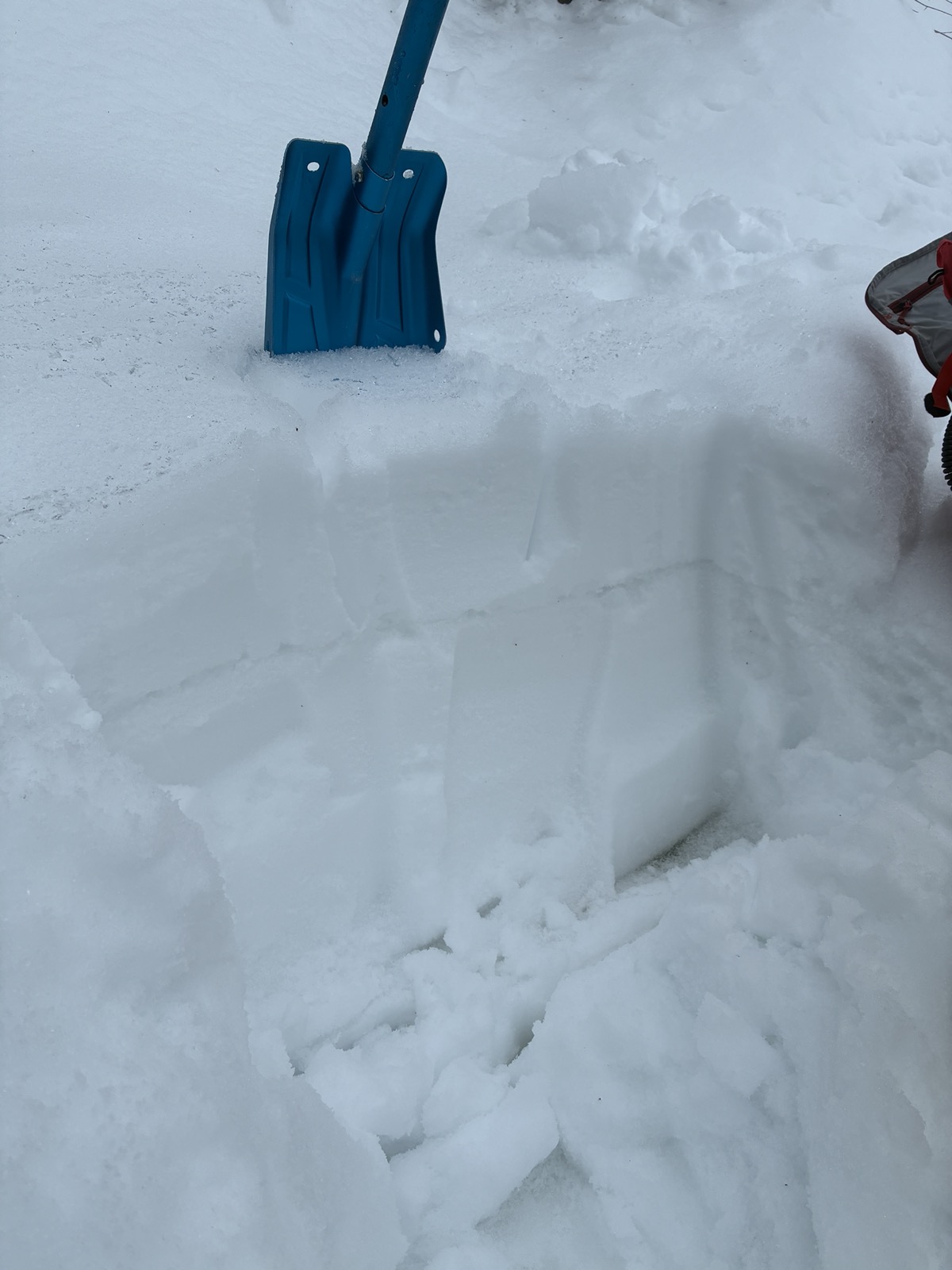 Collapsing observed on the way up, but fairly normal for a rainy day. Big surprise was a very distinct and extremely unstable weak layer at 4 - 12 inches on the Snowy Slide. Top layer releases very easy in pit tests in multiple locations. Likely the crust from last weekend is stopping today's rain and getting weakened. May consolidate overnight but uncertain.
