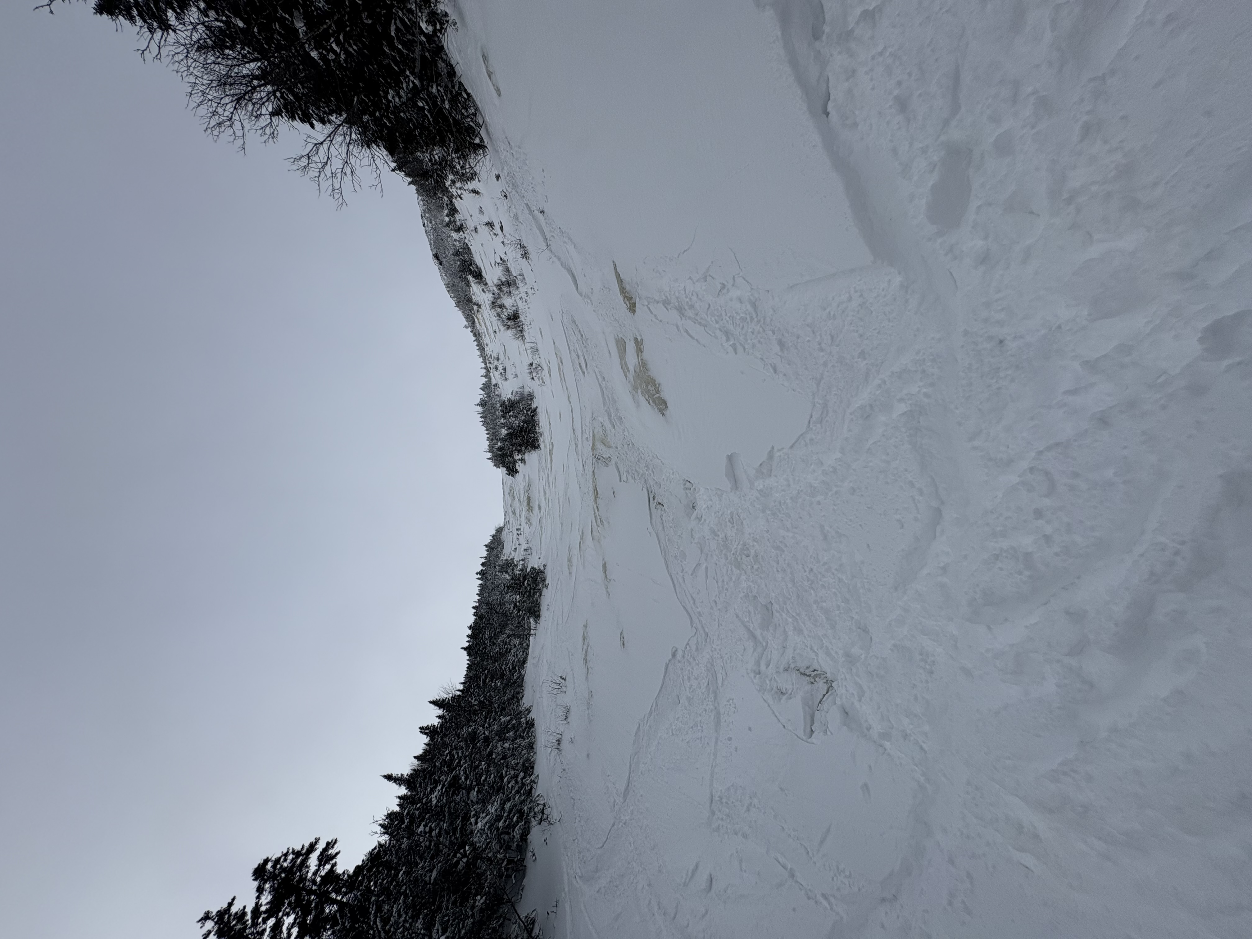 A view from the bottom of the convergence of the Whiteface slides. Zoom in on Slide 1 to get a good view of the main ice falls. Definitely worth scoping out your line before sending yourself aimlessly to your demise.
